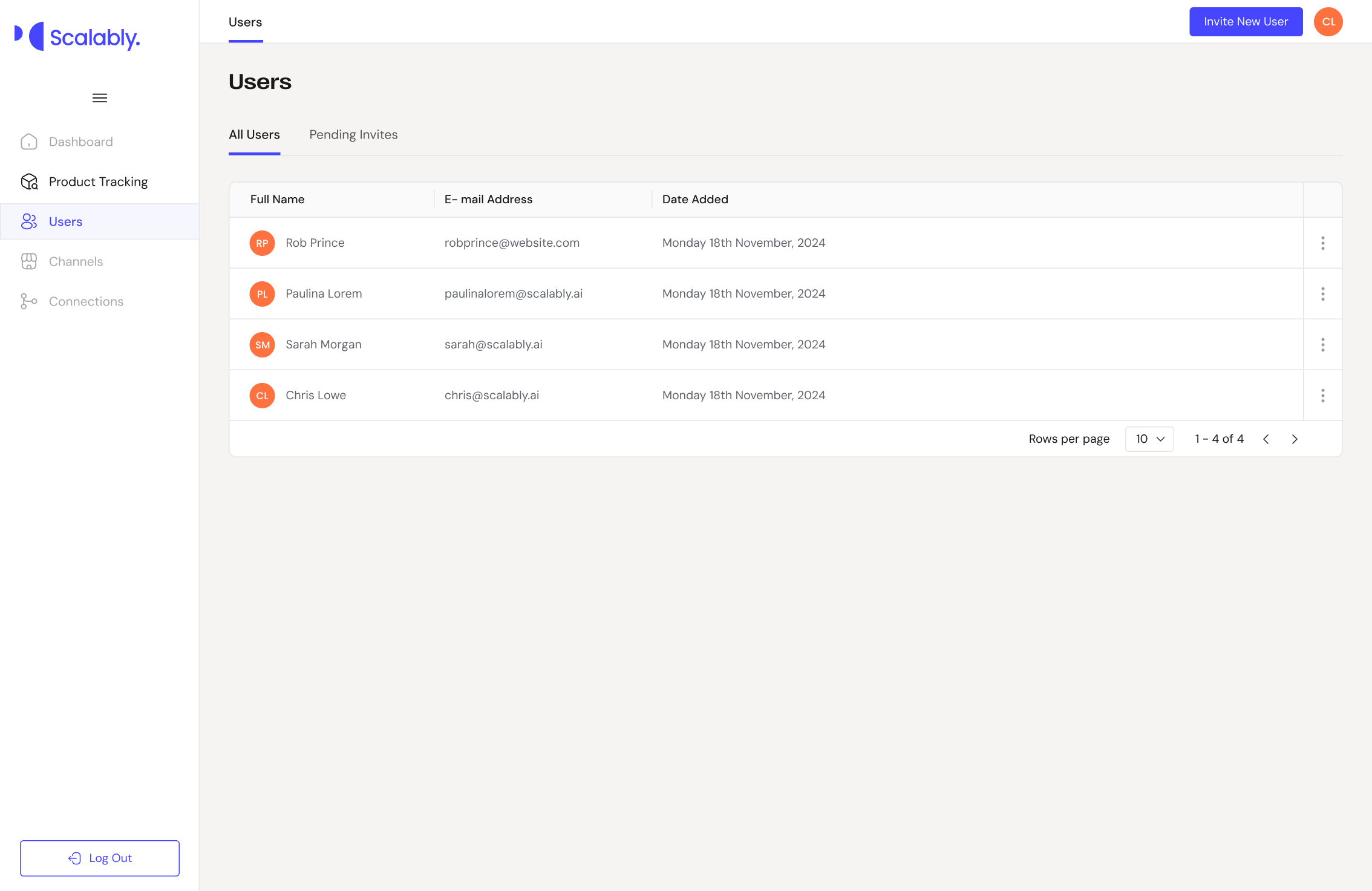 I overhauled the product design with logical component architecture and a custom MUI theme that integrated Scalably’s brand identity into every touchpoint.